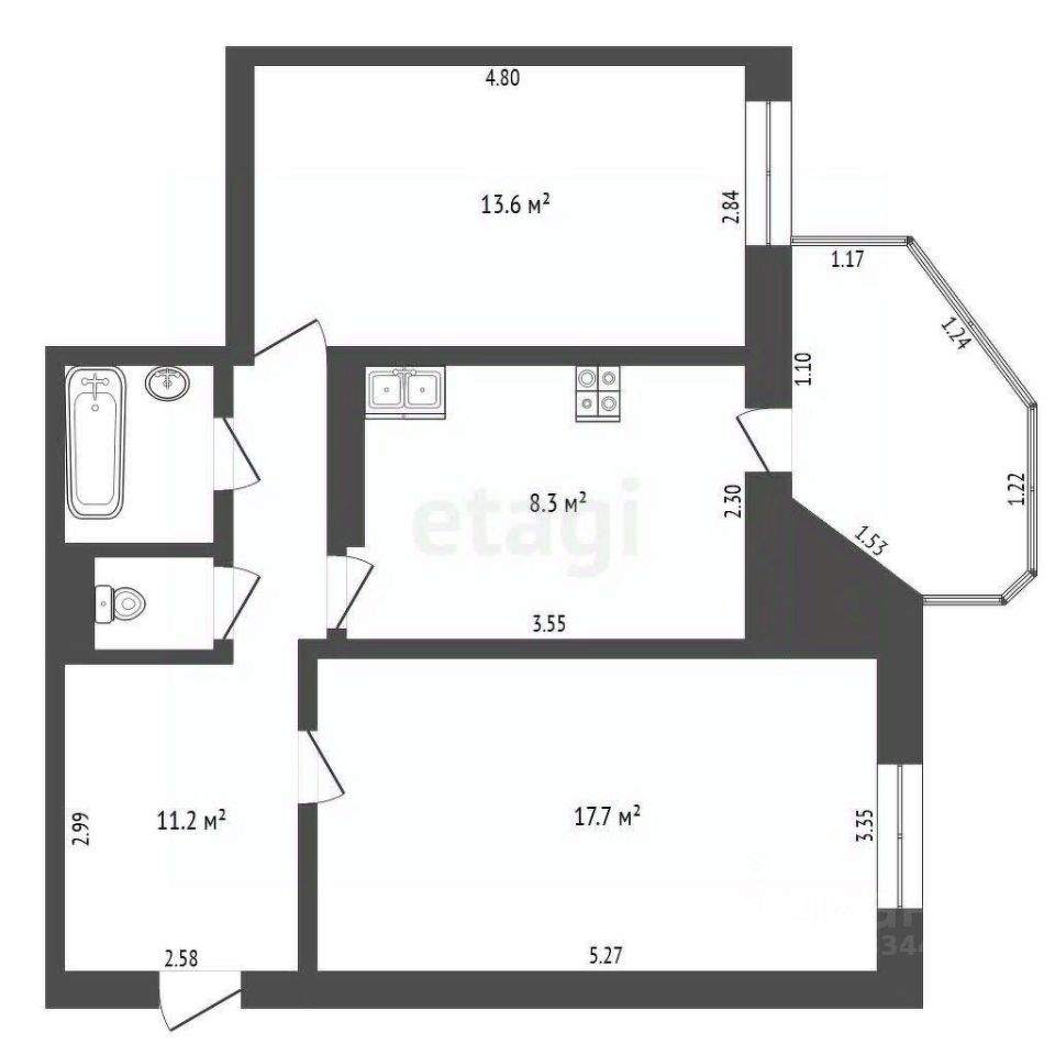- Комфортная 2-комнатная квартира площадью 54 м²