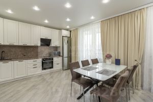 В квартире выполнен современный качественный ремонт с использованием хороших материалов. Установлен новый кухонный гарнитур со встроенной техникой, что позволяет заехать и сразу начать жить без дополнительных вложений.