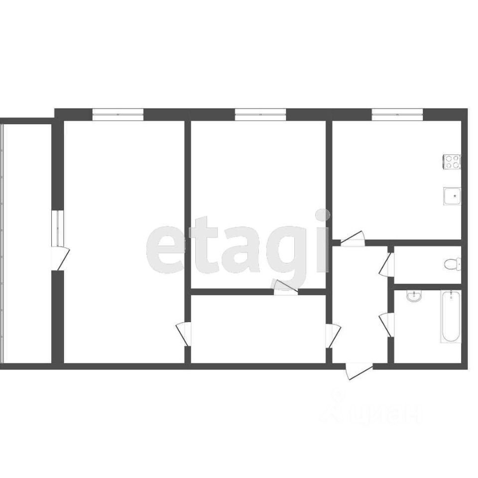 Кухня 9 м2; 2 комнаты прямоугольной формы, в одной из которых просторная лоджия.