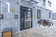 Вход в подъезд с уровня земли, есть колясочная, площадка для выгула собак. Двор без машин, гостевой паркинг за территорией двора. Есть детская и спортивная площадка. По периметру ЖК видео наблюдение.