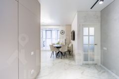 Квартира с дизайн-проектом в светлых тонах с качественными материалами, на стенах в кухне-гостиной венецианская штукатурка, пол в плитке. Качественная сантехника и электрика.