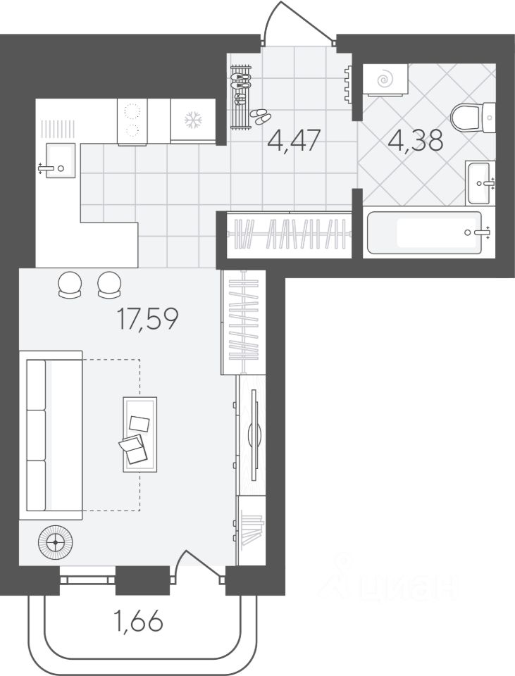 Основная комната в квартире многофункциональна и легко трансформируется в гостиную, спальню или столовую.