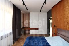 Просторная спальня с выделенной рабочей зоной. Для комфортного пребывания и хранения вещей, в спальне есть встроенные шкафы и туалетный столик.