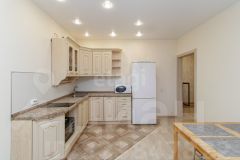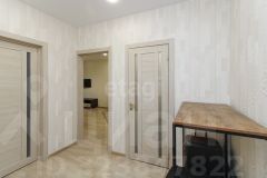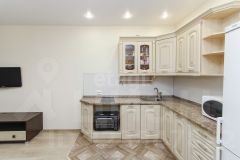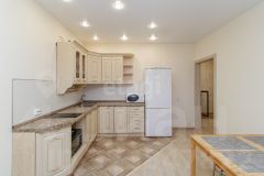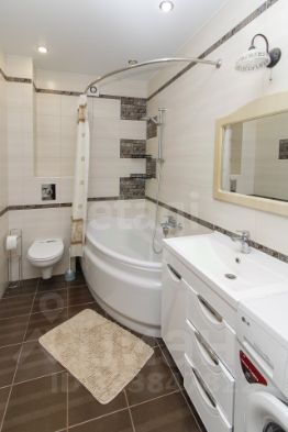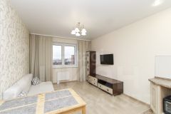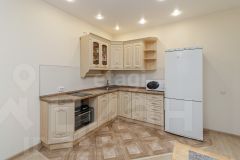 В квартире сделан хороший косметический ремонт - поклеены обои светлого оттенка, на полу - ламинат/ плитка, установлен натяжной потолок, светильники. В ванной комнате - керамическая плитка. Установлена качественная сантехника: угловая ванна, подвесной унитаз, тумба с раковиной.