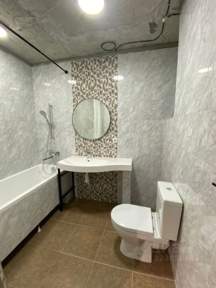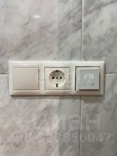 В ванной комнате смонтирован теплый пол, выключатель принудительной вытяжки, дополнительная розетка, имеется вывод для подсветки зоны зеркала над раковиной, подготовка под установку бойлера для нагрева воды. Раковина из искусственного камня. Шахта стояка закрыта, для удобного доступа к сантехнике и счетчикам установлен большой скрытый люк.