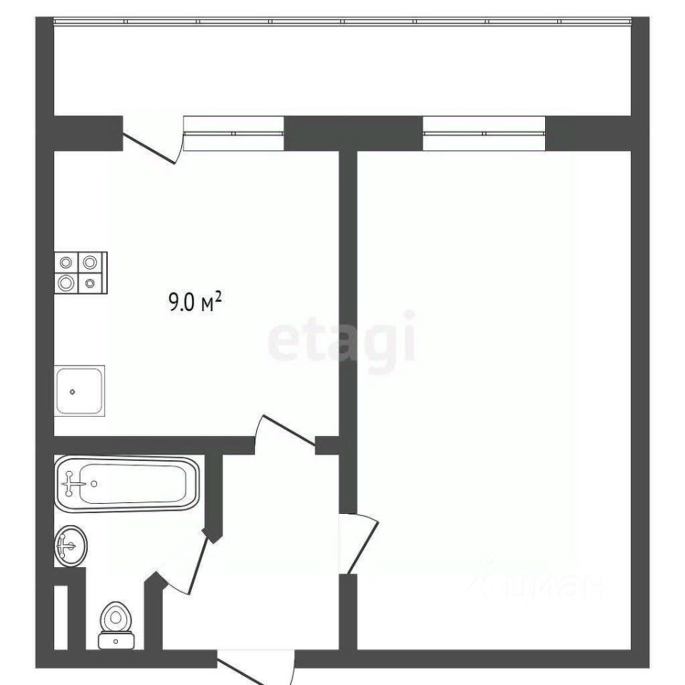 Кухня 9 кв.м. гостиная 17 кв.м. санузел совмещен 3,5 кв.м.