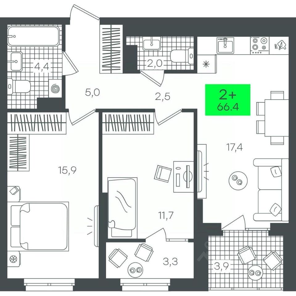 Продаётся 2-комнатная квартира в строящемся доме (В5.1 (Малкова, 19)), срок сдачи: III-кв. 2026, общей площадью 66.49 кв.м., на 15 этаже. Компания 4D приступила к строительству нового жилого комплекса "Гранд квартал". Новый ЖК находится в зеленой зоне Калининского района, южнее микрорайона Тюменская слобода.