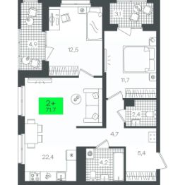 Продаётся 2-комнатная квартира в строящемся доме (В5.3 (Малкова, 19)), срок сдачи: III-кв. 2026, общей площадью 71.71 кв.м., на 5 этаже. Компания 4D приступила к строительству нового жилого комплекса "Гранд квартал". Новый ЖК находится в зеленой зоне Калининского района, южнее микрорайона Тюменская слобода.