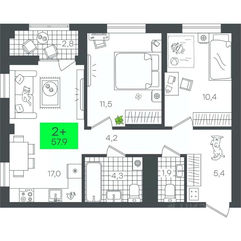 Продаётся 2-комнатная квартира в строящемся доме (Д4.1 (Малкова, 3)), срок сдачи: III-кв. 2026, общей площадью 57.91 кв.м., на 14 этаже. Компания 4D приступила к строительству нового жилого комплекса "Гранд квартал". Новый ЖК находится в зеленой зоне Калининского района, южнее микрорайона Тюменская слобода.