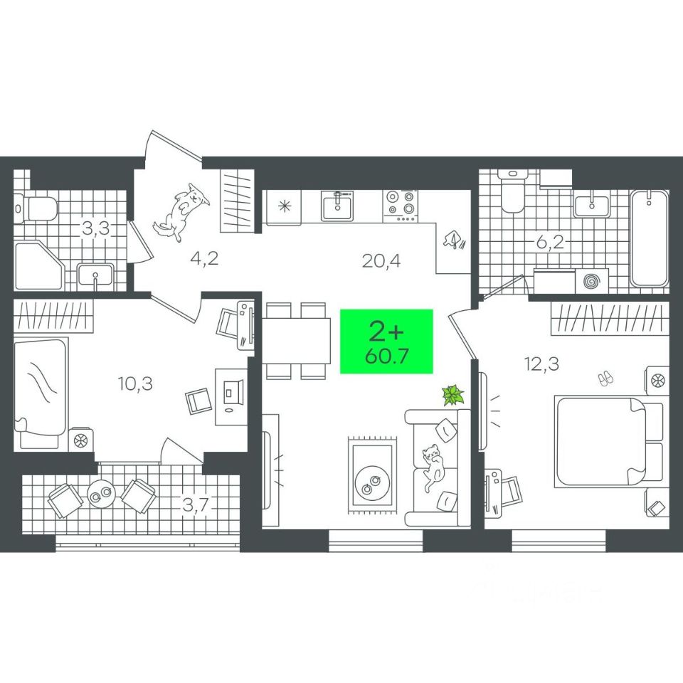 Продаётся 2-комнатная квартира в строящемся доме (Д4.1 (Малкова, 3)), срок сдачи: III-кв. 2026, общей площадью 60.7 кв.м., на 18 этаже. Компания 4D приступила к строительству нового жилого комплекса "Гранд квартал". Новый ЖК находится в зеленой зоне Калининского района, южнее микрорайона Тюменская слобода.