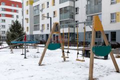 В парадной располагается велосипедно-колясочная, во дворе разнообразная по своему функционалу детская площадка.