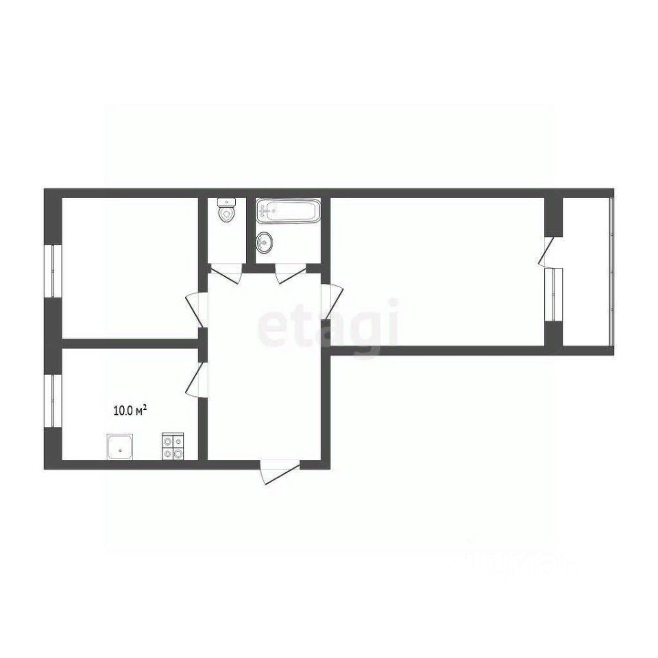 Также планировка включает в себя кухню-гостиную, две изолированных друг от друга комнаты и раздельный санузел;