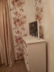 В квартире косметический ремонт : пластиковые окна в 2 комнатах , кухня и 1 спальня: дерево от застройщика .