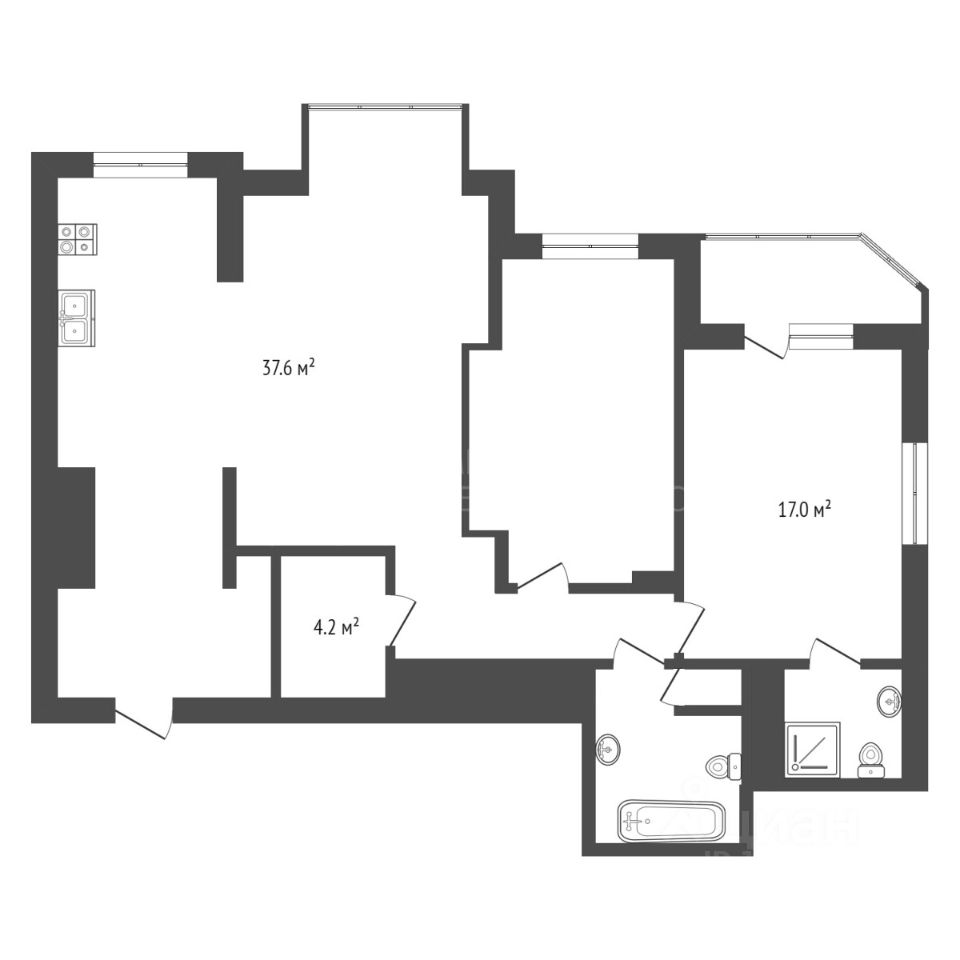 Количество комнат: 2