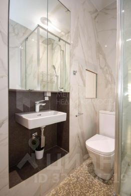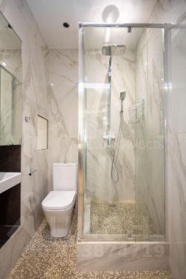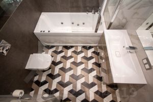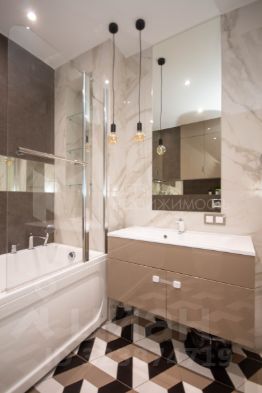 Ванная комната оборудована современной сантехникой и местом для стиральной машины.