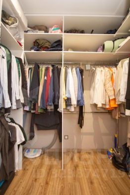 Уютная спальня с большим гардеробным пространством.