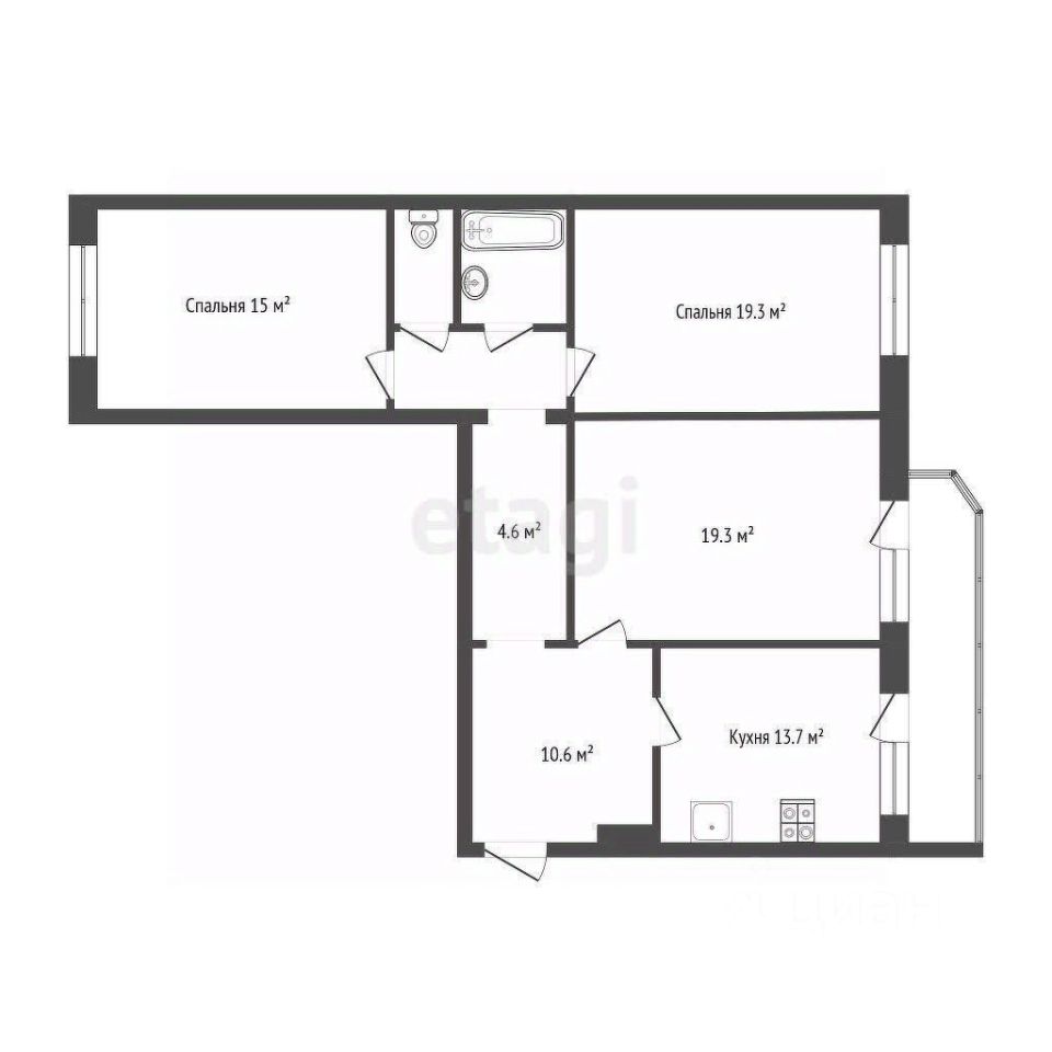 Серия 121-3т — удачная "распашонка": комнаты правильной формы, большие окна, просторный балкон, который выходит сразу из двух комнат.