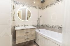 Выполнен современный ремонт, на полу в комнатах ламинат, в корридоре и санузле керамическая плитка. На балкон проведено электричество, установлен шкаф для хранения, на полу плитка. При продаже остаётся кухонный гарнитур, шкафы к корридоре и зале.