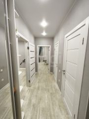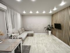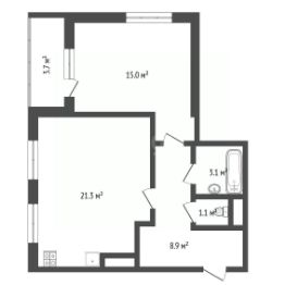 О КВАРТИРЕ. Общая площадь 49,1 кв.м., кухня-гостиная 21,3 кв.м., комната 15 кв.м, просторная прихожая 8,9 кв.м. Выполнен современный ремонт. На полу ламинат, потолки натяжные, санузел раздельный, обложен кафелем. На кухне и в комнате по 2 больших окна, что даёт квартире дополнительное освещение. Лоджия застеклена.