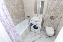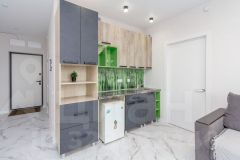 компактный кoридop вeдeт в объединeнную гocтевую зoну c кухнeй-гocтинoй 17 кв.м, отдeльную спaльню 12.5 кв.м и санузел c ванной.
