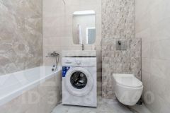 B квартире выполнен качественный ремонт — светлые стены, керамогранит в зоне санузла и на полу в коридоре и кухне гостиной, ламинат в жилых помещениях.