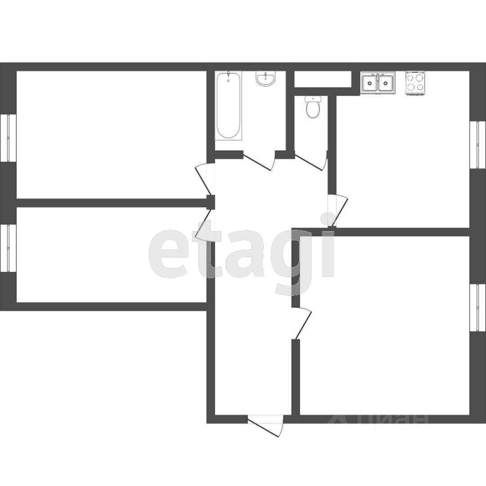 Квартира состоит из трех комнат. Санузел раздельный. Окна выполнены из пластикового материала.При продаже в квартире остается почти все . Балкон присутствует. Дверь выполнена из железа. Установлены счетчики воды. Часть окон выходит на солнечную сторону. Вид из окон открывается на двор.