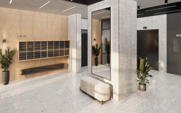В квартире предчистовая отделка: стены оштукатурены и выровнены по общему уровню, на полу слой цементно-песчаного раствора с дополнительным гидроизоляционным слоем в ванной. Проведена электрика и готовы розетки с выключателями. А ещё установлены сейф-двери и счётчики с телеметрией.