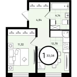 Общая площадь33,08 м²
