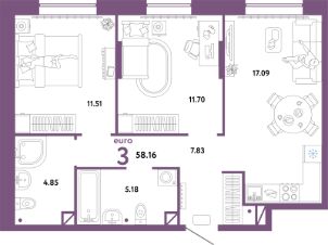 Продаётся 3-комнатная квартира в строящемся доме (ГП-2 (Дом Форум)), срок сдачи: IV-кв. 2025, общей площадью 58.16 кв.м., на 4 этаже. Жилой комплекс "Юнион" - многоэтажные жилые дома с объектами инфраструктуры в границах улиц Интернациональная, Объездная дорога г. Тюмень от застройщика ГК Страна Девелопмент.
