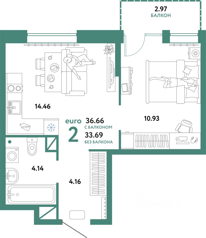 Продаётся 2-комнатная квартира в сданном доме (Интернациональная, 199к10 (ГП-2 Дом Форум)), срок сдачи: IV-кв. 2025, общей площадью 36.66 кв.м., на 7 этаже. Жилой комплекс "Юнион" - многоэтажные жилые дома с объектами инфраструктуры в границах улиц Интернациональная, Объездная дорога г. Тюмень от застройщика ГК Страна Девелопмент.