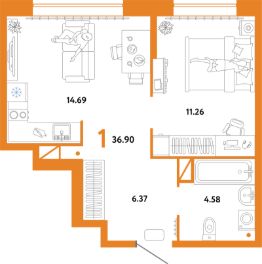 Продаётся 1-комнатная квартира в сданном доме (Интернациональная, 199к10 (ГП-2 Дом Форум)), срок сдачи: IV-кв. 2025, общей площадью 36.9 кв.м., на 12 этаже. Жилой комплекс "Юнион" - многоэтажные жилые дома с объектами инфраструктуры в границах улиц Интернациональная, Объездная дорога г. Тюмень от застройщика ГК Страна Девелопмент.