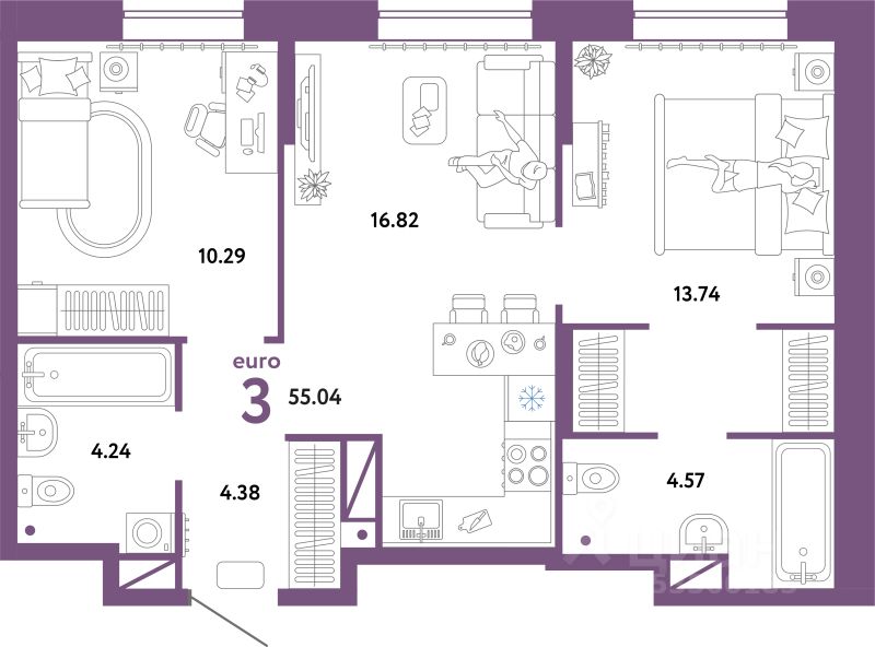 Продаётся 3-комнатная квартира в строящемся доме (ГП-2 (Дом Форум)), срок сдачи: IV-кв. 2025, общей площадью 54.04 кв.м., на 16 этаже. Жилой комплекс "Юнион" - многоэтажные жилые дома с объектами инфраструктуры в границах улиц Интернациональная, Объездная дорога г. Тюмень от застройщика ГК Страна Девелопмент.