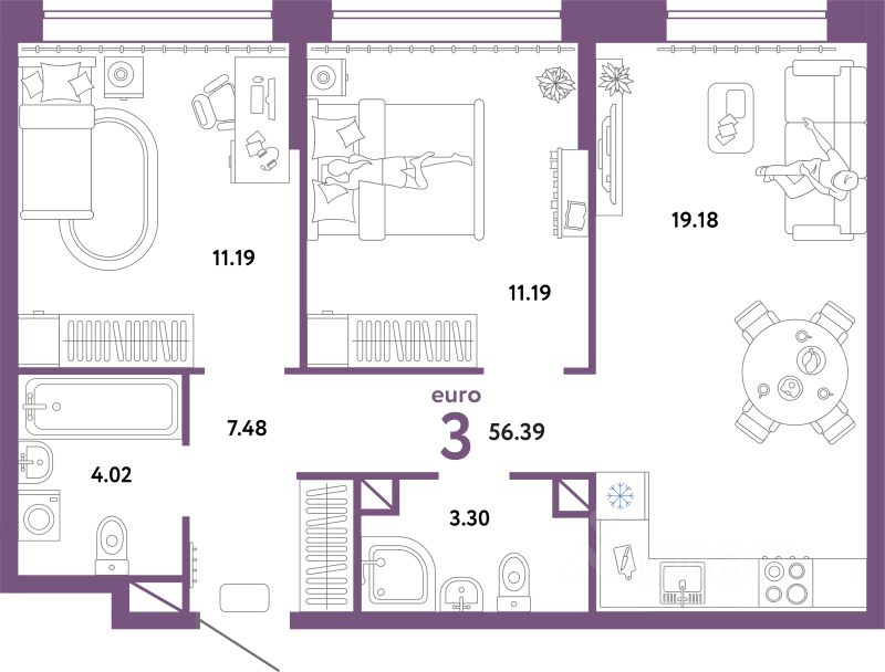 Продаётся 3-комнатная квартира в строящемся доме (ГП-2 (Дом Форум)), срок сдачи: IV-кв. 2025, общей площадью 56.16 кв.м., на 2 этаже. Жилой комплекс "Юнион" - многоэтажные жилые дома с объектами инфраструктуры в границах улиц Интернациональная, Объездная дорога г. Тюмень от застройщика ГК Страна Девелопмент.