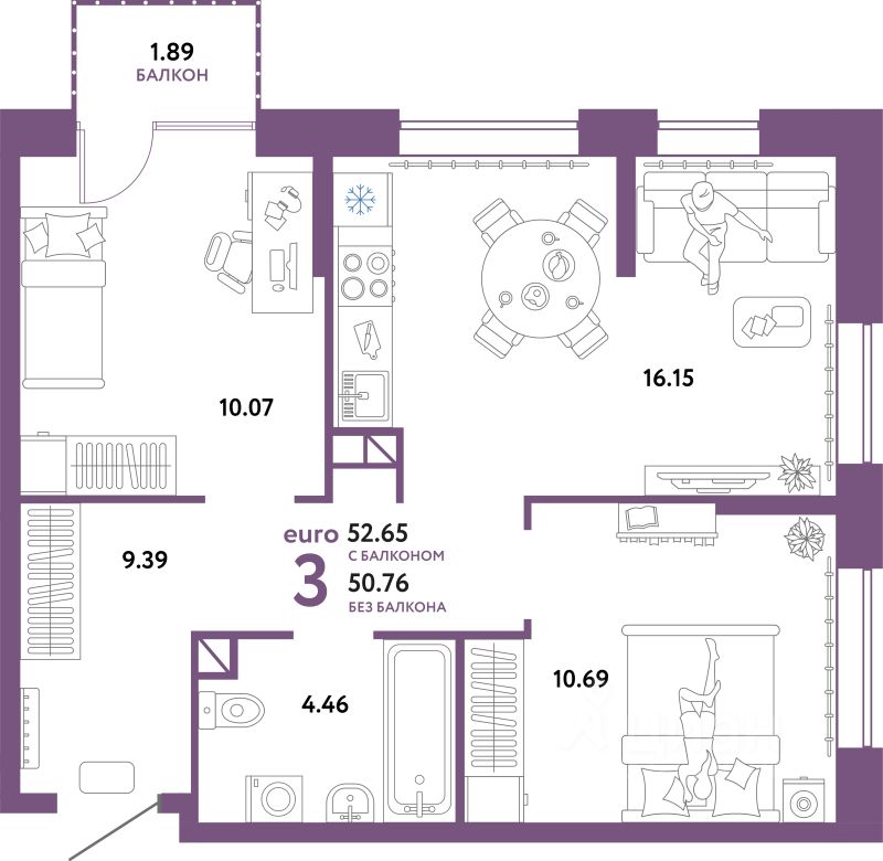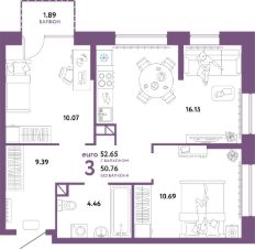 Продаётся 3-комнатная квартира в строящемся доме (ГП-2 (Дом Форум)), срок сдачи: IV-кв. 2025, общей площадью 52.65 кв.м., на 3 этаже. Жилой комплекс "Юнион" - многоэтажные жилые дома с объектами инфраструктуры в границах улиц Интернациональная, Объездная дорога г. Тюмень от застройщика ГК Страна Девелопмент.