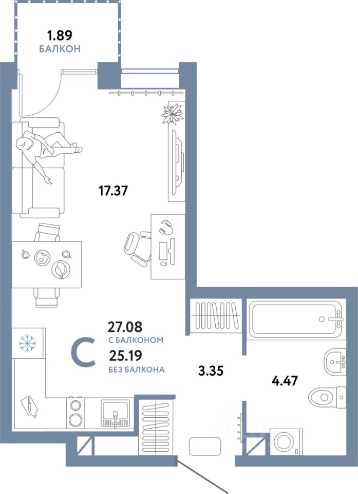 Продаётся студия в строящемся доме (ГП-2 (Дом Форум)), срок сдачи: IV-кв. 2025, общей площадью 27.08 кв.м., на 3 этаже. Жилой комплекс "Юнион" - многоэтажные жилые дома с объектами инфраструктуры в границах улиц Интернациональная, Объездная дорога г. Тюмень от застройщика ГК Страна Девелопмент.