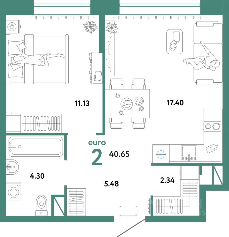 Продаётся 2-комнатная квартира в сданном доме (Интернациональная, 199к10 (ГП-2 Дом Форум)), срок сдачи: IV-кв. 2025, общей площадью 40.65 кв.м., на 8 этаже. Жилой комплекс "Юнион" - многоэтажные жилые дома с объектами инфраструктуры в границах улиц Интернациональная, Объездная дорога г. Тюмень от застройщика ГК Страна Девелопмент.