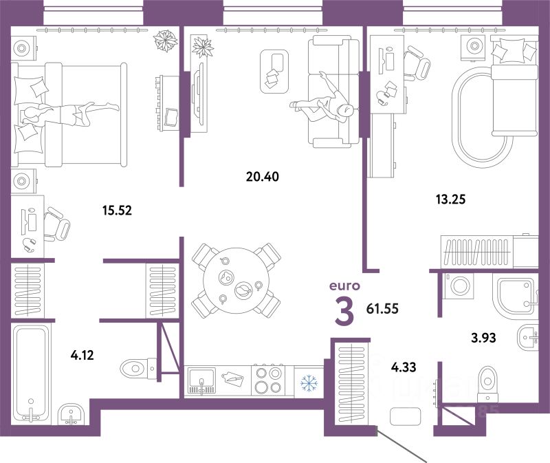Продаётся 3-комнатная квартира в строящемся доме (ГП-2 (Дом Форум)), срок сдачи: IV-кв. 2025, общей площадью 61.5 кв.м., на 9 этаже. Жилой комплекс "Юнион" - многоэтажные жилые дома с объектами инфраструктуры в границах улиц Интернациональная, Объездная дорога г. Тюмень от застройщика ГК Страна Девелопмент.