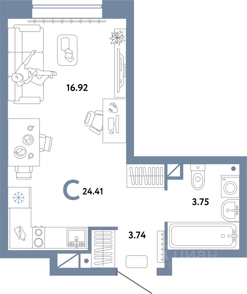 Продаётся студия в строящемся доме (ГП-2 (Дом Форум)), срок сдачи: IV-кв. 2025, общей площадью 24.32 кв.м., на 12 этаже. Жилой комплекс "Юнион" - многоэтажные жилые дома с объектами инфраструктуры в границах улиц Интернациональная, Объездная дорога г. Тюмень от застройщика ГК Страна Девелопмент.