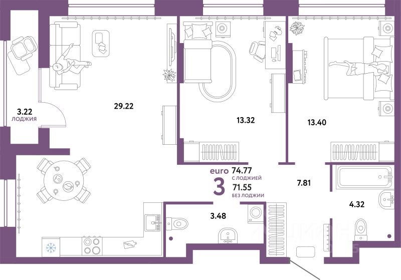 Продаётся 3-комнатная квартира в строящемся доме (ГП-2 (Дом Форум)), срок сдачи: IV-кв. 2025, общей площадью 74.77 кв.м., на 2 этаже. Жилой комплекс "Юнион" - многоэтажные жилые дома с объектами инфраструктуры в границах улиц Интернациональная, Объездная дорога г. Тюмень от застройщика ГК Страна Девелопмент.