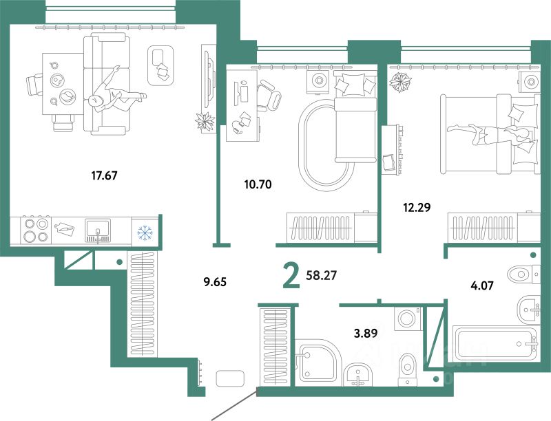 Продаётся 2-комнатная квартира в строящемся доме (ГП-2 (Дом Форум)), срок сдачи: IV-кв. 2025, общей площадью 58.27 кв.м., на 7 этаже. Жилой комплекс "Юнион" - многоэтажные жилые дома с объектами инфраструктуры в границах улиц Интернациональная, Объездная дорога г. Тюмень от застройщика ГК Страна Девелопмент.