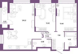 Продаётся 3-комнатная квартира в строящемся доме (ГП-2 (Дом Форум)), срок сдачи: IV-кв. 2025, общей площадью 74.77 кв.м., на 10 этаже. Жилой комплекс "Юнион" - многоэтажные жилые дома с объектами инфраструктуры в границах улиц Интернациональная, Объездная дорога г. Тюмень от застройщика ГК Страна Девелопмент.