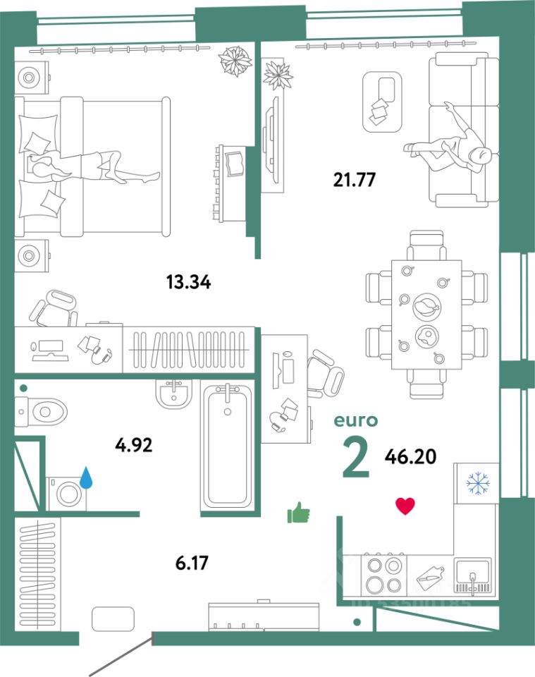 Продаётся 2-комнатная квартира в сданном доме (Интернациональная, 199к9 (ГП-1 Дом Синергия)), срок сдачи: I-кв. 2025, общей площадью 46.2 кв.м., на 15 этаже. Жилой комплекс "Юнион" - многоэтажные жилые дома с объектами инфраструктуры в границах улиц Интернациональная, Объездная дорога г. Тюмень от застройщика ГК Страна Девелопмент.