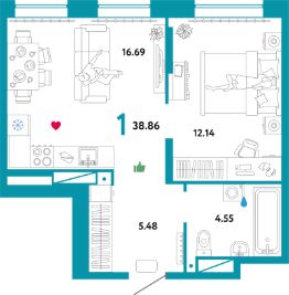 Продаётся 1-комнатная квартира в сданном доме (Интернациональная, 199к9 (ГП-1 Дом Синергия)), срок сдачи: I-кв. 2025, общей площадью 38.86 кв.м., на 14 этаже. Жилой комплекс "Юнион" - многоэтажные жилые дома с объектами инфраструктуры в границах улиц Интернациональная, Объездная дорога г. Тюмень от застройщика ГК Страна Девелопмент.