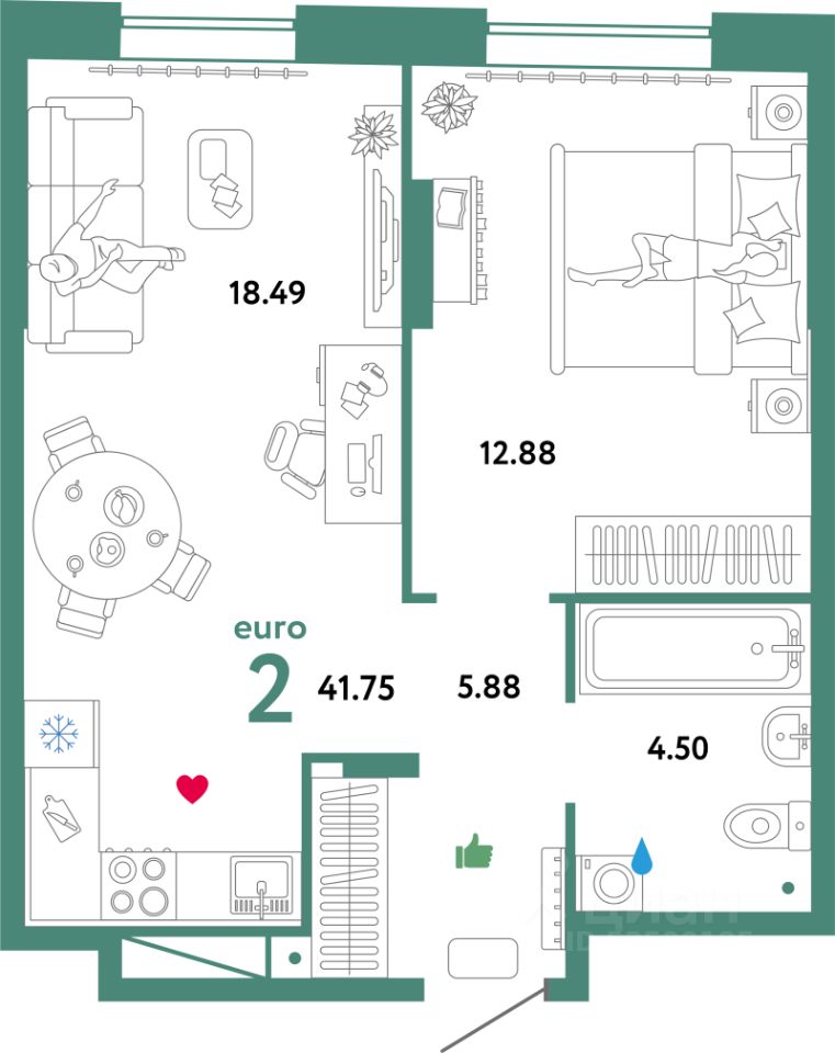 Продаётся 2-комнатная квартира в сданном доме (Интернациональная, 199к9 (ГП-1 Дом Синергия)), срок сдачи: I-кв. 2025, общей площадью 41.75 кв.м., на 2 этаже. Жилой комплекс "Юнион" - многоэтажные жилые дома с объектами инфраструктуры в границах улиц Интернациональная, Объездная дорога г. Тюмень от застройщика ГК Страна Девелопмент.