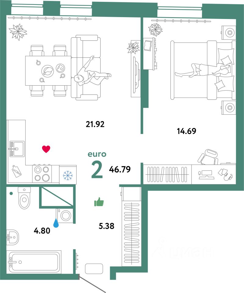 Продаётся 2-комнатная квартира в сданном доме (Интернациональная, 199к9 (ГП-1 Дом Синергия)), срок сдачи: I-кв. 2025, общей площадью 46.79 кв.м., на 8 этаже. Жилой комплекс "Юнион" - многоэтажные жилые дома с объектами инфраструктуры в границах улиц Интернациональная, Объездная дорога г. Тюмень от застройщика ГК Страна Девелопмент.