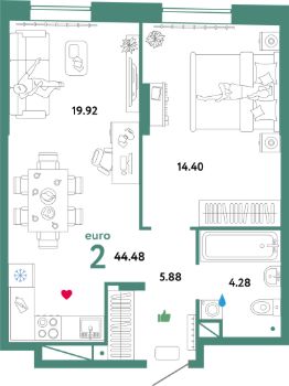 Продаётся 2-комнатная квартира в сданном доме (Интернациональная, 199к9 (ГП-1 Дом Синергия)), срок сдачи: I-кв. 2025, общей площадью 44.29 кв.м., на 13 этаже. Жилой комплекс "Юнион" - многоэтажные жилые дома с объектами инфраструктуры в границах улиц Интернациональная, Объездная дорога г. Тюмень от застройщика ГК Страна Девелопмент.