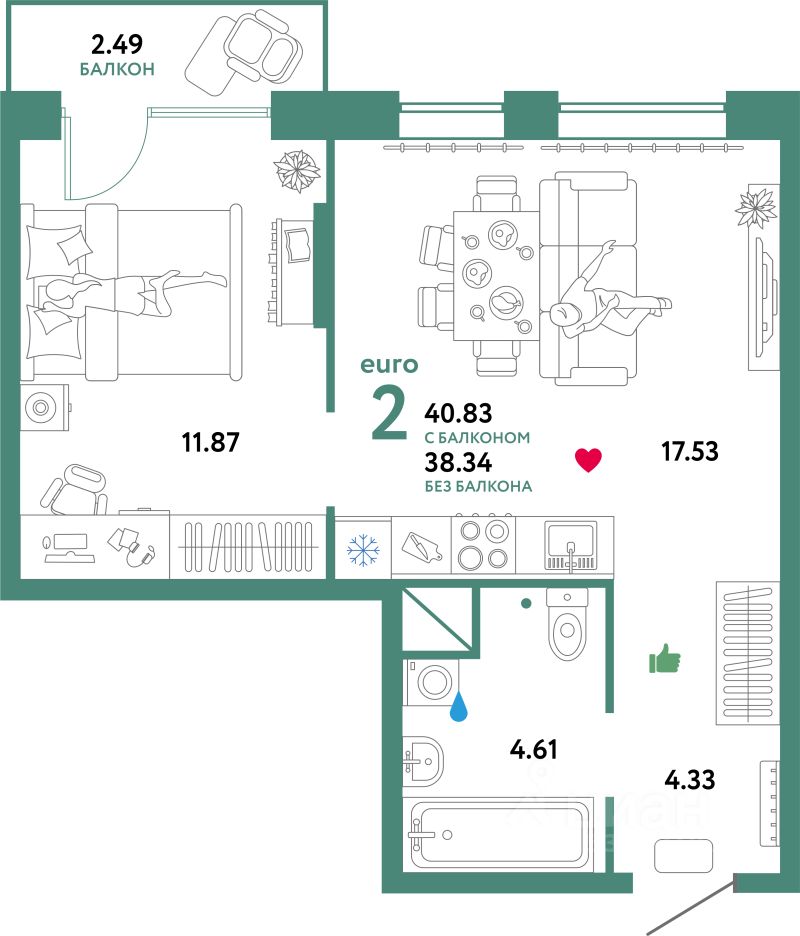 Продаётся 2-комнатная квартира в сданном доме (Интернациональная, 199к9 (ГП-1 Дом Синергия)), срок сдачи: I-кв. 2025, общей площадью 40.83 кв.м., на 5 этаже. Жилой комплекс "Юнион" - многоэтажные жилые дома с объектами инфраструктуры в границах улиц Интернациональная, Объездная дорога г. Тюмень от застройщика ГК Страна Девелопмент.
