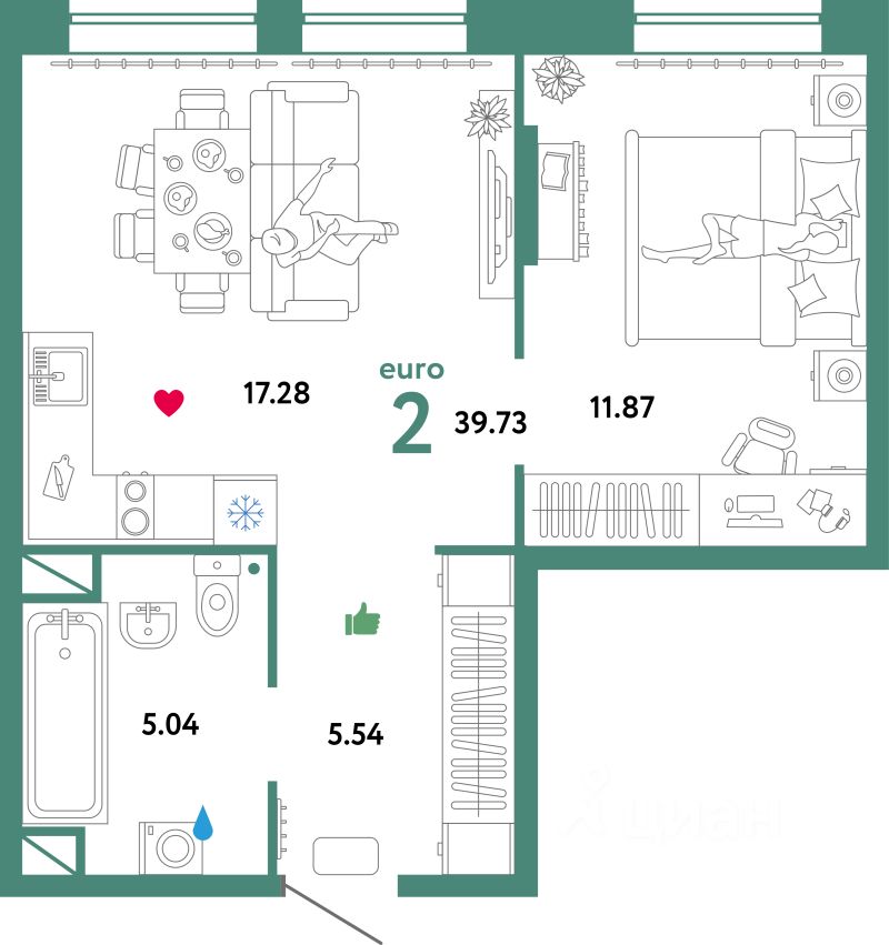 Продаётся 2-комнатная квартира в сданном доме (Интернациональная, 199к9 (ГП-1 Дом Синергия)), срок сдачи: I-кв. 2025, общей площадью 39.73 кв.м., на 8 этаже. Жилой комплекс "Юнион" - многоэтажные жилые дома с объектами инфраструктуры в границах улиц Интернациональная, Объездная дорога г. Тюмень от застройщика ГК Страна Девелопмент.