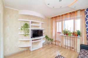 Большая комната позволяет зонировать пространство по вашему усмотрению. Установлена комфортная большая кровать для сладких снов.