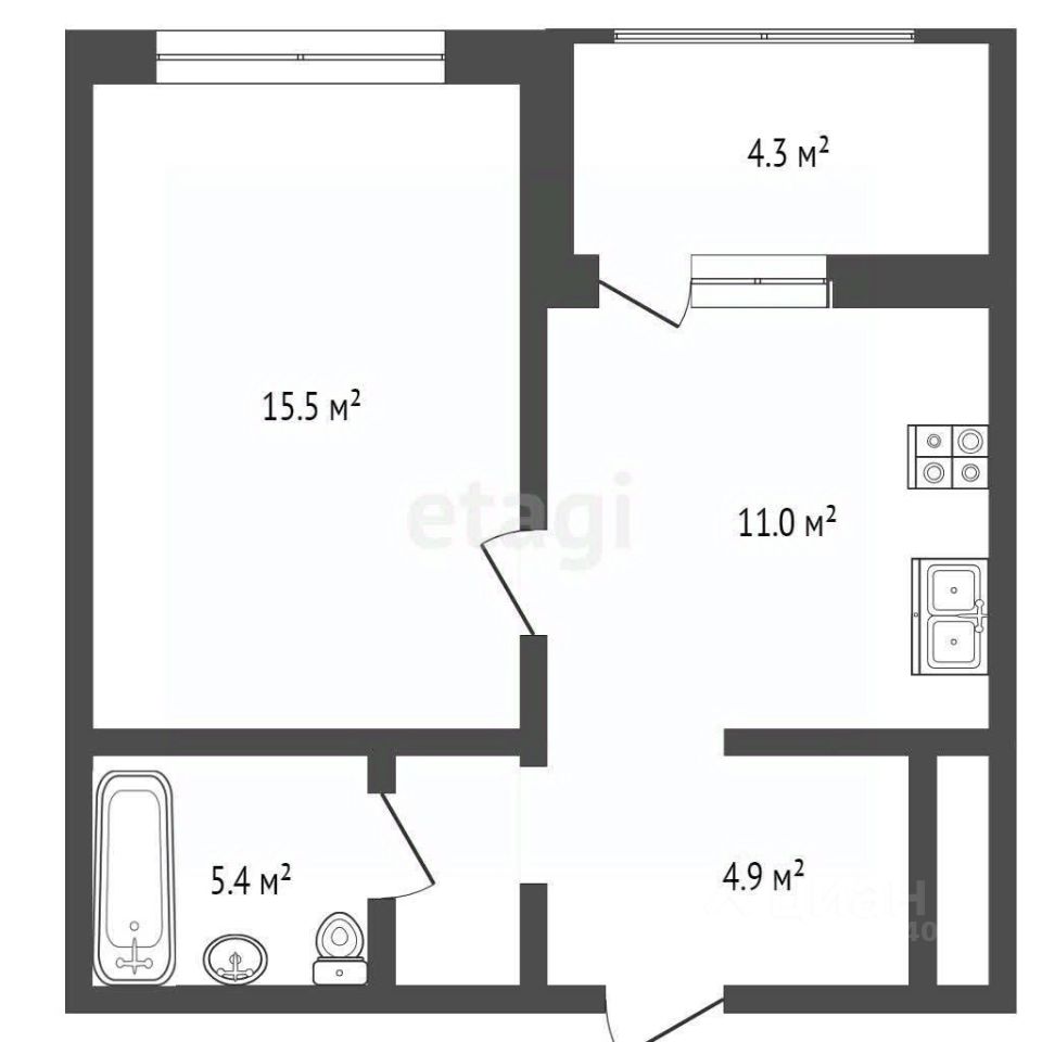 Планировка: Просторная комната, функциональная кухня, совмещенный санузел.